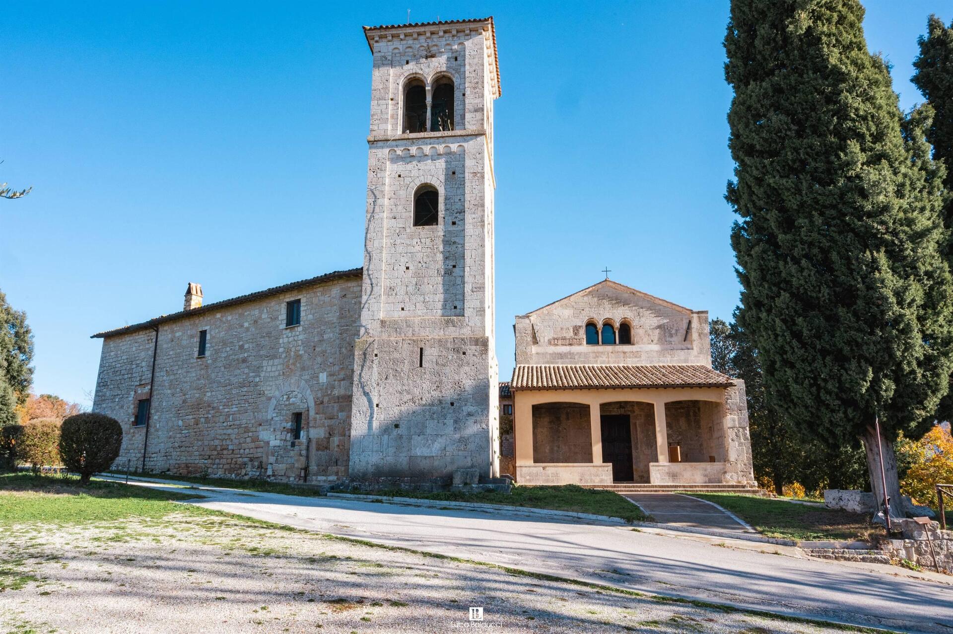 La chiesa di San Faustino, una delle più interessanti della zona, venne edificata sui ruderi di una villa romana, della quale recenti scavi hanno rivelato le fondazioni ed ambienti destinati alla lavorazione dei prodotti agricoli ad essa connessi. Costruita con materiale di recupero di edifici romani, presenta uniformità di struttura e di colore dovuta all’uso del travertino locale, materiale di costruzione anche del basamento della stessa chiesa. La chiesa, dedicata a San Faustino, secondo la tradizione, discepolo del vescovo della Civitas Martana San Felice, e l'attiguo monastero, furono edificati dai monaci benedettini, sulla tomba del Santo. La facciata presenta un’architettura di stile lombardo: della struttura originaria resta una bella trifora con colonnine marmoree. In origine doveva avere il presbiterio sopraelevato con sottostante cripta. L'interno, ad unica navata, è molto rimaneggiato, al centro dell'abside sono interrati due sarcofagi, uno dei quali è venerato come quello di San Faustino. Tra i vari frammenti scultorei ed iscrizioni, è interessante quella che ricorda il passaggio del pontefice Pio II nel dicembre del 1462. Si segnala all’interno un affresco del pittore aretino Sebastiano Flori raffigurante la Madonna del Rosario (1580). Il campanile, che si eleva, con una struttura imponente, separato dalla chiesa, è stato innalzato tra il 1920 ed il 1925; l’edificio attiguo, invece, che costituiva il complesso abbaziale, ha conservato la forma inconsueta di poderosa casa rurale. San Faustino fu un importante priorato benedettino, sede di pievania, che agli inzi del XII secolo risulta sottoposto alla giurisdizione dell’Abbazia di Farfa.